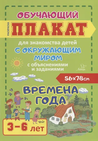 Перед Вами уникальный обучающий плакат-раскраска, который познакомит ребенка с окружающим миром и поможет ответить на многие его "почему?" На нашем большом плакате (56х78 см) можно найти много интересной и полезной информации, изложенной понятным детям языком, также его можно использовать для закрепления темы "Времена года" на занятиях по "Окружающему миру".