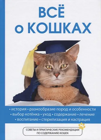 .Эта книга содержит всю полезную информацию, касающуюся вопросов ухода и содержания домашних кошек. Вы узнаете об истории кошек, разновидностях их пород, а также о воспитании, кормлении, болезнях и их лечении.