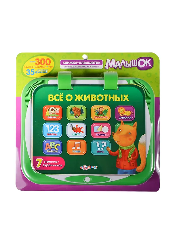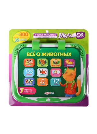 С нашим планшетиком ваш малыш будет играть с удовольствием, а вы - наблюдать за тем, как он узнаёт много нового о животных, учит цифры, формы, цвета и говорит по-английски! А ещё в каждом планшетике сюрприз - музыкальный плеер с шестью любимыми песенками!