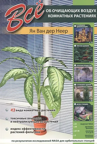 В книге описаны 43 комнатных растения, которые способны активно абсорбировать вредные вещества, накапливающиеся в атмосфере замкнутых помещений. Этот список составлен на основе опытов, проводимых NASA. Целью подобных исследований было изучение способов жизнеобеспечения людей, длительное время работающих в замкнутом пространстве. Книга поможет выбрать растения, которые существенно способны увеличить работоспособность людей, проводящих длительное время в офисах и прочих помещениях современных городов. Приводятся данные о загрязнении воздуха в современных городах и о влиянии на здоровье человека таких опасных веществ как формальдегид, толуол, бензол, трихлорэтилен, ацетон и аммиак. Указаны исто