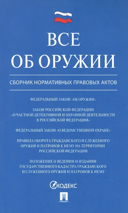 «Все об оружии: сборник нормативных актов.-М.:Проспект,2021.» и выбрать удобный способ его получения: самовывоз, доставка курьером