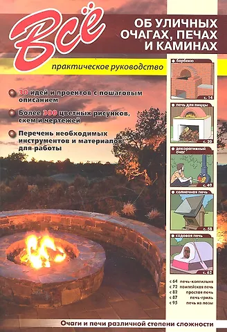 Сложить печь или камин, которые не только обогреют жилое помещение, но и украсят его, будет легче, если вы воспользуетесь практическими рекомендациями, изложенными в этой книге. В данном издании приведено более 30 проектов современных отопительных и комбинированных отопительных печей, кирпичных печей-каменок и металлических печей для бань, кирпичных каминов, каркасных печей, уличных очагов различного назначения, а также даны необходимые сведения по всему производственному циклу, начиная с эстетики, дизайна, материалов и заканчивая отделкой, эксплуатацией и ремонтом.
