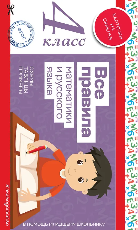 В пособии представлены все основные правила математики и русского языка за курс 4 класса. Карточки на скрепке способствуют закреплению знаний, полученных на уроках в начальной школе. Порядок тем соответствует школьной программе. Все правила изложены наглядно и доступно, а примеры и иллюстрации помогут школьникам лучше усвоить материал.