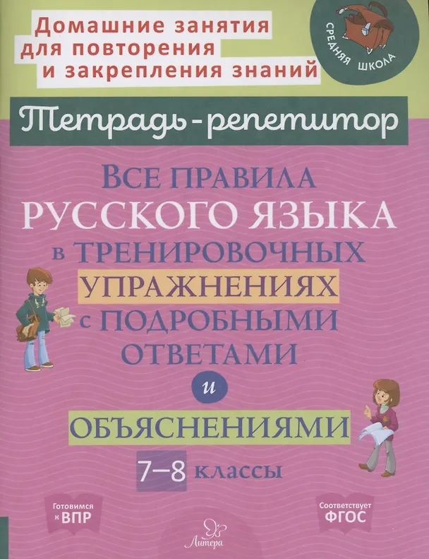 Вашему вниманию предлагается Тетрадь-репетитор "Все правила русского языка в тренировочных упражнениях с подробными ответами и объяснениями 7-8 классы".