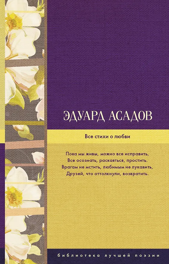 Эдуард Асадов (1923-2004) - удивительный поэт и прозаик, чья эмоциональная, глубокая и жизненная лирика уже более полувека отзывается в сердцах читателей. Творчество поэта широко и многогранно - это и замечательные стихотворения о любви и жизни, посвящения Родине и память о событиях войны, неповторимый цикл стихов о братьях наших меньших и природе, поэмы, миниатюры, эпитафии.