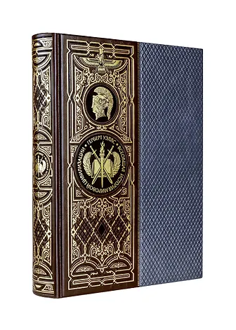 Книга в коллекционном инкрустированном переплете. Переплет изготовлен их двух видов натуральной кожи по технологии XIX века и украшен сплошным тончайшим тиснением, в полном соответствии с лучшими образцами переплетов европейских мастеров. Использовано 3 вида тиснения — золото,черный натуральный пигмент и рельефное тиснение. В оформлении переплета использованы растительно-геометрические орнаменты, благодаря им книга будет отлично смотреться на любой книжной полке. Лента для закладывания страниц и каптал, скрепляющий верх и низ объемного тома, изготовлены из шелка. Бумага в книге легкая, матовая, что обеспечивает комфортное чтение даже длительное время, цветные иллюстрации напечатаны на мелова