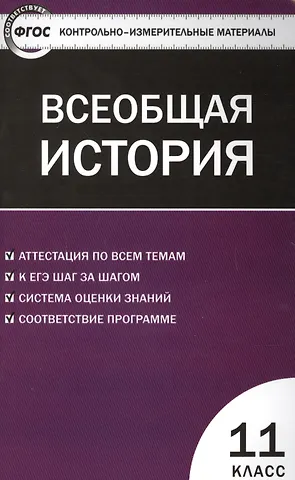 Представленные контрольно-измерительные материалы (КИМы) для 11 класса тематически сгруппированы, соответствуют требованиям школьной программы по истории и требованиям ФГОС. Использование КИМов позволит оценить уровень усвоения обучающимися каждой темы, а также подготовить их к тестовой форме проверки знаний, что пригодится при выполнении заданий ЕГЭ. В конце издания представлены ключи ко всем заданиям.