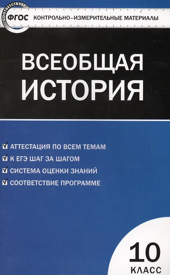 Представленные контрольно-измерительные материалы (КИМы) для 10 класса тематически сгруппированы, соответствуют требованиям школьной программы по истории и требованиям ФГОС. Использование КИМов позволит не только оценить усвоение учащимися материала по каждой теме, но и подготовить их к современной тестовой форме проверки знаний, что пригодится при выполнении заданий ЕГЭ. В конце издания предложены ключи ко всем тестам.