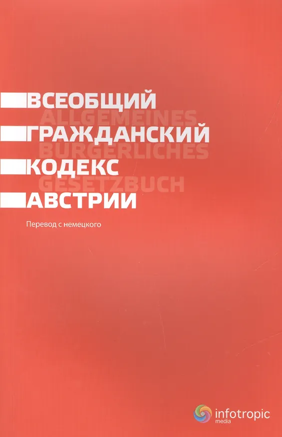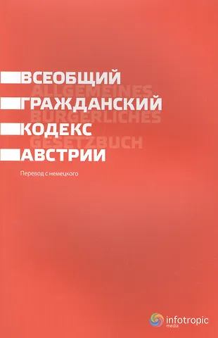 Впервые на русском языке публикуется перевод Всеобщего гражданского кодекса Австрии, действующего (с изменениями) почти 200 лет. Изучение иностранного законодательства, с одной стороны, расширяет профессиональный кругозор, с другой - позволяет под другим углом взглянуть на законодательство собственной страны, тем более что Россия и Австрия принадлежат к одной правовой семье. Идеи, выраженные во Всеобщем гражданском кодексе Австрии, и использованные подходы и механизмы вполне могут пригодиться при совершенствовании отечественного законодательства. Перевод текста ВГК будет полезен и тем юристам, которые столкнулись с необходимостью практического применения современного австрийского гражданског
