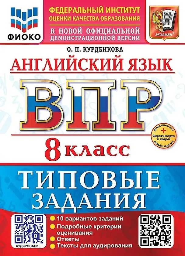 Данное пособие полностью соответствует федеральному государственному образовательному стандарту. Книга содержит 10 вариантов типовых заданий Всероссийской проверочной работы (ВПР) по английскому языку для учащихся 8-х классов. Сборник предназначен учащимся 8-х классов, учителям и методистам, использующим типовые задания для подготовки к Всероссийской проверочной работе по английскому языку.