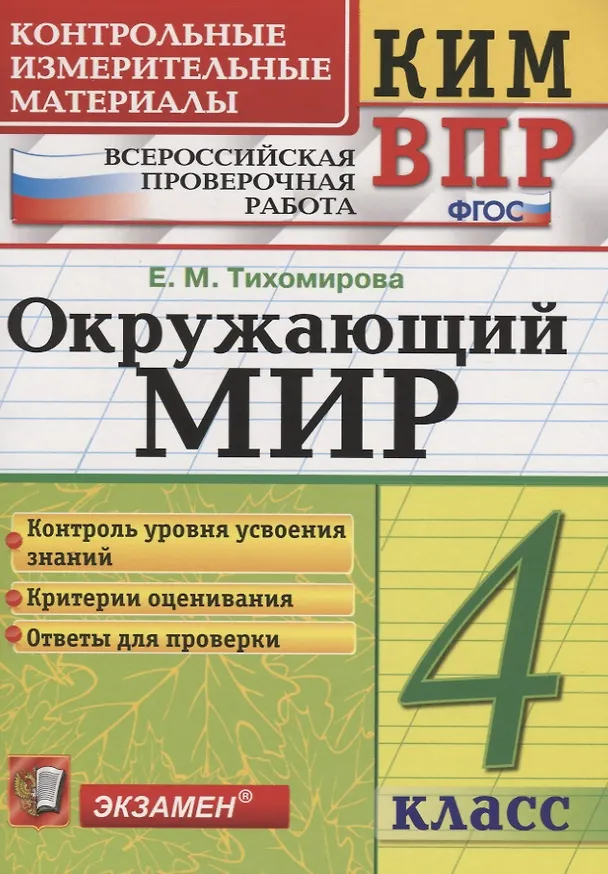Всероссийская проверочная работа 4 класс. Окружающий мир. ФГОС