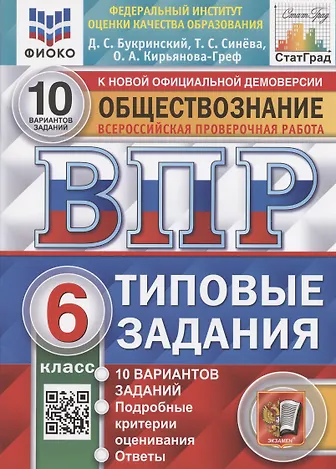 Сборник предназначен учащимся 6-х классов, учителям и методистам, использующим типовые задания для подготовки к Всероссийской проверочной работе по обществознанию.