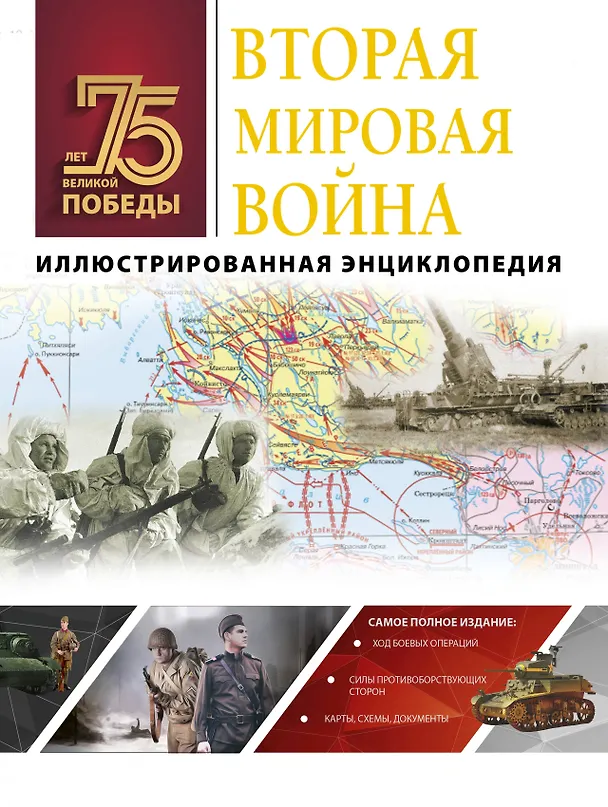 Эта иллюстрированная энциклопедия посвящена трагическим и героическим событиям Второй мировой войны 1939 – 1945 гг. Представленные здесь в хронологическом порядке емкие статьи содержат исчерпывающие объективно поданные сведения о политической и экономической обстановке в Европе и мире в предвоенные и военные годы. Уделено внимание и модернизации вооружения, результатом которой стало применение одной из противоборствующих сторон ядерного оружия. Особого внимания заслуживают подробные карты ключевых сражений и масштабных боевых операций в Италии, Алжире и Японии, в Тихоокеанском и Атлантическом бассейнах, на Северном, Восточном и других направлениях ведения боевых действий. Редкие сохранившиес