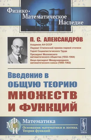 Вниманию читателей предлагается классическое учебное пособие, написанное выдающимся советским математиком, академиком АН СССР П.С.Александровым и посвященное общим вопросам теории множеств и функций. Более элементарные главы (первая, вторая, четвертая и пятая) образуют сами по себе связное целое и могут служить курсом теории множеств и теории функций действительного переменного в высших педагогических учебных заведениях. В остальных главах можно найти богатый материал для факультативных занятий студентов вузов.