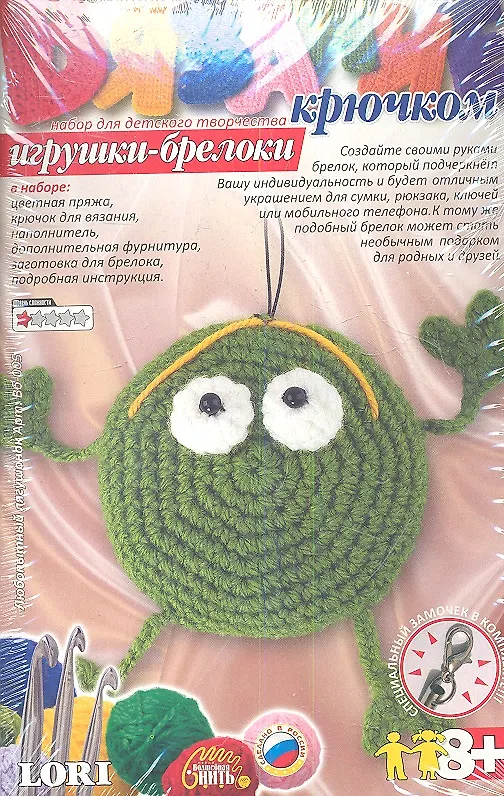 Вязание крючком Игрушки брелоки Любопытный лягушонок (8+) (Вб-005)