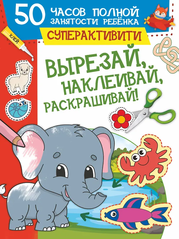 Издание «Вырезай, наклеивай, раскрашивай!» — это сборник занимательных упражнений на развитие внимания, логики, пространственного мышления и мелкой моторики для малышей 3—4 лет. Книга надолго увлечёт вашего ребёнка, так как здесь он найдёт самые разные задания: вырежи и наклей, найди отличия, пройди лабиринт, раскрась по образцу, найди пару, сосчитай. Покажите принцип выполнения задания на одном примере — и остальные головоломки этого типа будут понятны крохе интуитивно. От родителей требуется лишь подготовить всё необходимое для самостоятельной работы малыша с книгой — фломастеры, карандаши, клей, безопасные ножницы — и заниматься своими делами, предоставив ребёнку полную свободу творчества