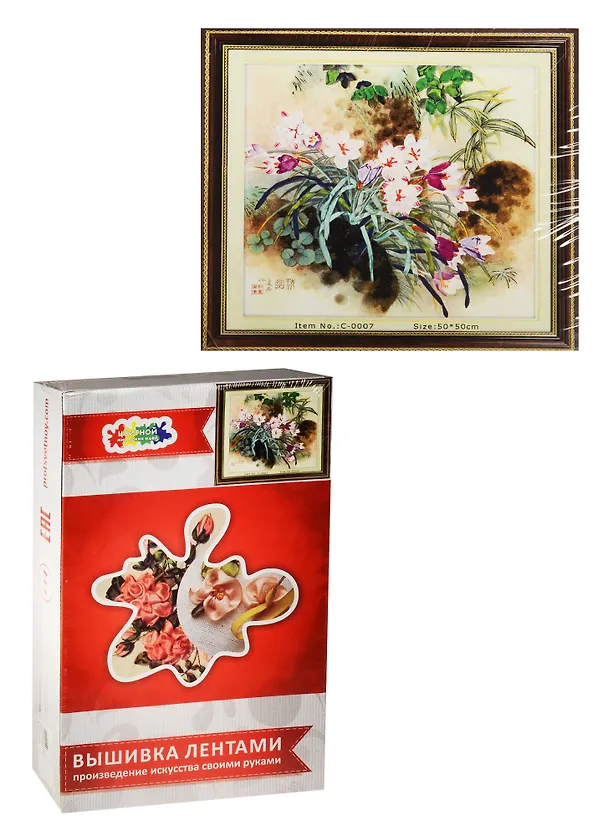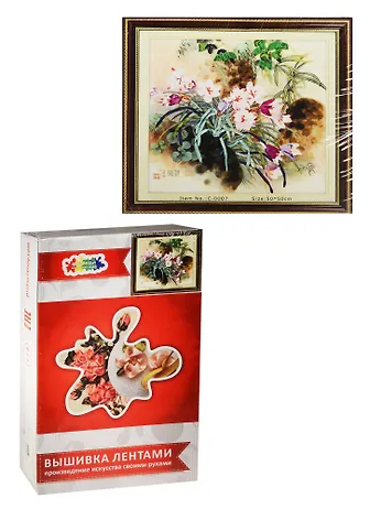 Вышивка лентами Цветы на опушке (C-0007) (50х50см) (набор для творч.) (Цветной мир ярких идей) (14+) (коробка)