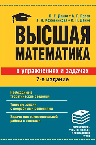 .Пособие состоит из двух частей и охватывает весь курс высшей математики для студентов высших профессиональных учебных заведений. В каждом параграфе приводятся необходимые теоретические сведения, состоящие из определений и основных математических понятий данного раздела, подробно рассматриваются методы решения типовых задач. Ко всем задачам для самостоятельной работы даны ответы. В Приложении приводятся таблицы, необходимые при решении некоторых задач.