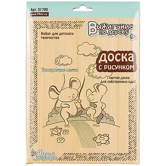 Мы не скрываем, что у нас есть набор для выжигания «Танцующие мыши» артикул 01565 с точно таким рисунком, в коробочной упаковке. В отличии от него, этот набор поместили в типовой картонный пакет с европодвесом и поменяли дизайн, на ставший уже стандартным для этой подкатегории.