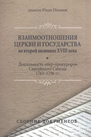 Взаимоотношения Церкви и государства во второй половине XVIII века (деятельность обер-прокуроров Святейшего Синода 1763-1796 гг.). Сборник документов