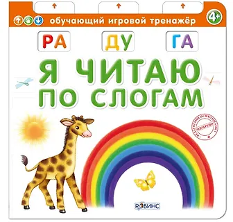 Книгу "Я читаю по слогам" купила в самом магазине сразу как только увидела, понравилась она мне своим дизайном. Она полность выполнена из очень плотного картона, так что она тяжеловатая хоть в ней всего пять разворотов. Размер больше альбомного листа. На последнем развороте внутри листа встроены выдвижные полоски со слогами. Книжка полность в красочных иллюстрациях, с четким напечатаным текстом, разного размера.
