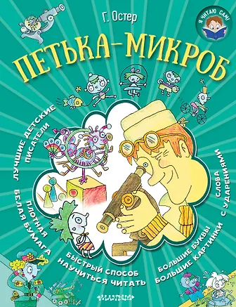 Сказочная повесть «Петька-микроб» знаменитого детского писателя Григория Остера – прекрасный подарок тем ребятам, которые начинают самостоятельно читать. В этой весёлой книге есть всё, чтобы сделать процесс чтения лёгким, удобным и интересным – крупный шрифт, ударения в словах, много ярких иллюстраций. А увлекательные приключения главного героя – умного, доброго и отважного Петьки-микроба – заставят прочитать книгу на одном дыхании!