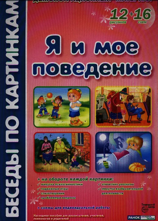Предлагаемое учебное пособие содержит 12 рисунков с изображениями ситуаций, которые помогут научить детей управлять собой. Пособие имеет универсальный характер, так как может использоваться на занятиях в детском саду и в начальной школе. В дополнительном материале к разноцветным рисункам подано 16 схем и схематических рисунков с творческими заданиями, которые мы предлагаем вам ксерокопировать для того, чтобы раздать детям для дальнейшей работы. Они учитывают индивидуальный подход к каждому ребенку в таком сложном вопросе, как поведение.