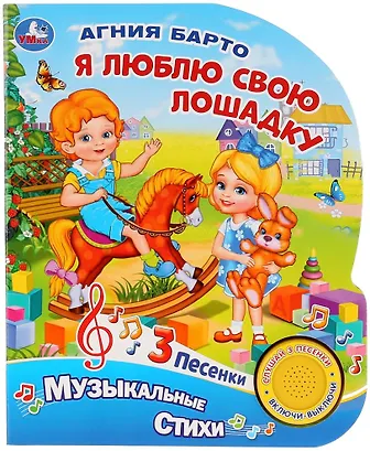 Компактная книга из прочного безопасного картона с кнопкой для прослушивания. Любимые авторы, народные фольклор, истории по мультфильма, и конечно, 3 песенки!