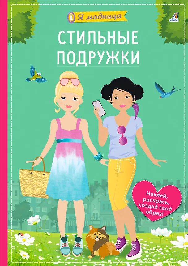 Ты можешь использовать готовые наклейки со стильной одеждой. А можешь придумать свои наряды: платья, джинсы, юбки и многое другое, – раскрасить наклейки. Ведь в каждой девочке живёт настоящий художник-модельер.
