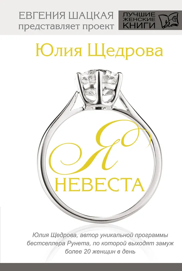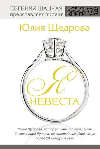 Я - невеста. Книга очень интересная. Я уже в третий раз замужем, и купила книгу своей дочери, на будущее. Ну и самой почитать- я люблю такие книги. Юлия Щедрова дает несколько ценных советов, причем за сущие копейки. Честно говоря, я сама не подозревала о некоторых важных вещах. Потому, видимо, замуж то вышла, а мужчину мечты так и не нашла. Жаль, что такие хорошие книги стали появляться совсем недавно. Сколько семей не распалось бы. И сколько женщин чувствовали бы себя красивыми и любимыми и желанными.