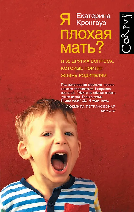 Как сейчас принято. Что хорошая мать должна делать то, то и то, и при этом чувствовать себя счастливой. Если в садик ребенка отдала рано- плохо, если не чувствуешь себя на седьмом небе от счастья, когда полгода не спишь и голова кружится - плохо, на работу вышла- плохо. У нас до таких крайностей же доходит. Работаешь- ребенка бросила, а что ребенок будет есть, если не работать, никому не важно. Я плохая мать И 33 других вопроса которые портят жизнь родителям мне попала вовремя. Я уже была на грани нервного срыва, когда ее прочитала. Екатерина Кронгауз просто рассказывает свою историю, но ее посыл- что надо оставаться людьми, а не растворяться в ребенке, верен. И близок мне. Никому еще не было хорошо от избытка родительской любви, особенно если мать всем жертвует для этого.