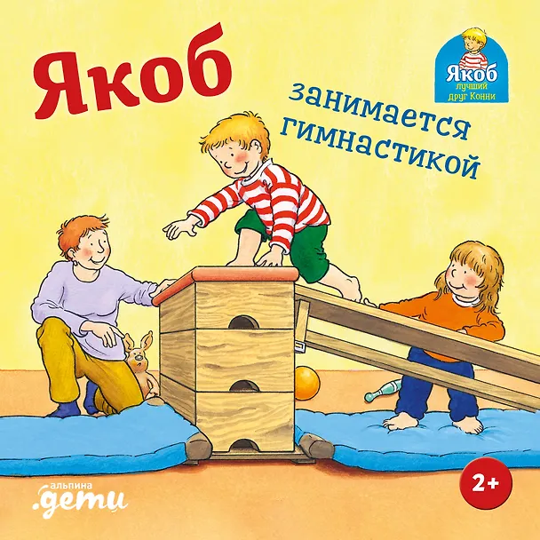 Сегодня Якоб идёт на своё первое занятие по гимнастике. Там очень интересно, и он с любопытством изучает всё вокруг. Вместе с другими ребятами Якоб будет играть в весёлые игры, научится ходить по бревну, карабкаться по шведской стенке и летать на канате.