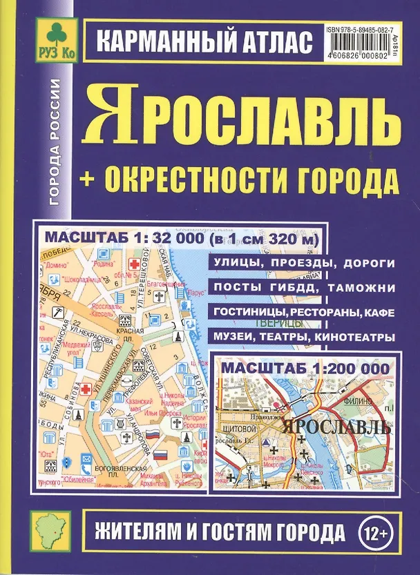 Ярославль+ окрестности города. План города: Масштаб 1:32 000. Карта окрестностей города Масштаб: 1:200 000