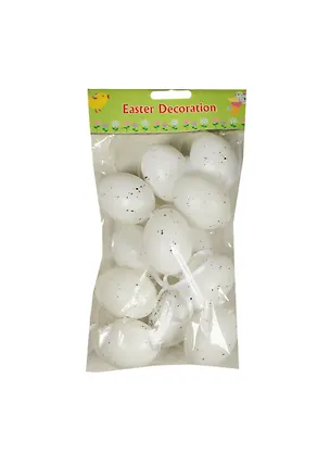 Яйца для декора пластиковые на ленточке в наборе (11001301) (12шт) (6х4см) (упаковка)