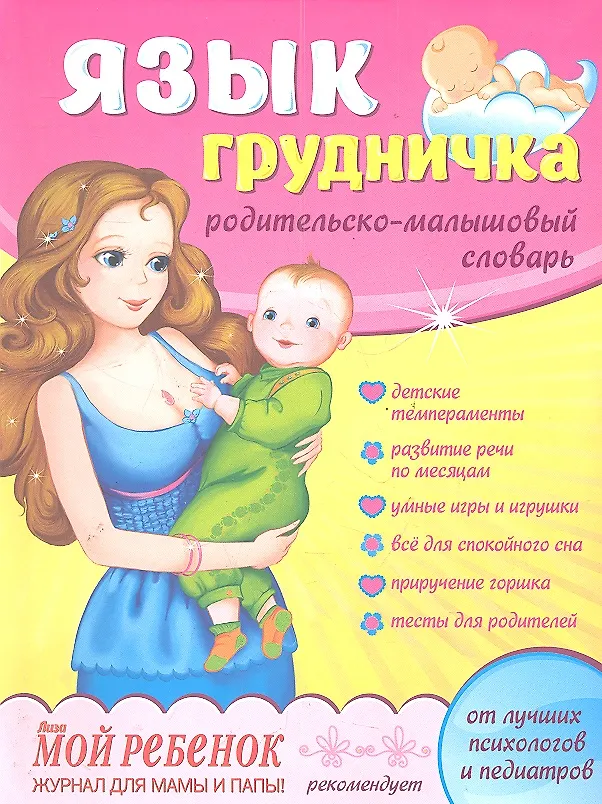 .Воспользуйтесь первым в истории родительско- малышовым словарем. Его составили опытные психологи и педиатры на основе наблюдений за сотнями разных малышей. Благодаря им универсальный язык жестов и звуков маленького человечка стал доступен маме, папе, бабушке и дедушке.