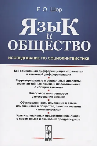 Книга профессора Р.О. Шор "Язык и общество" в свое время стала первым в СССР исследованием по социологии языка. В ней на ряде интересных примеров рассмотрено, как социальная дифференциация отражается в языковой дифференциации; описываются территориальные и социальные диалекты, включая тайные языки, и их соотношение с "общим языком"; обращается внимание, что таким образом в языке выражается классовое или групповое самосознание. Ставится вопрос об обусловленности изменений в языке изменениями в обществе - как экономическими, так и политическими. Значительное место в книге занимает критика "наивных представлений" людей о своем языке и языковых предрассудков; выявляются их причины и предлагаются