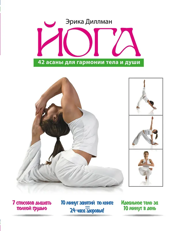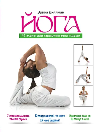 Эрика Диллман - американский журналист, редактор, спортивный обозреватель, много лет пишущий на темы здоровья и спорта. Эта книга стала бестселлером, в ней Эрика честно рассказывает свою историю болезни и раскрывает главный секрет: вернуться к полной жизни ей помогла йога! 10 минут занятий по книге = 24 часа здоровья. В книге вы найдете самую необходимую информацию для новичков в йоге: 7 дыхательных упражнений; 10 вариантов тренировки для начинающих: от освежающей пятиминутной до интенсивной сорокаминутной; подробные инструкции с понятными иллюстрациями по выполнению каждой асаны; комплекс самых эффективных поз, в том числе легендарную серию «Приветствие Солнца» - «Сурия Намаскар»; список ас
