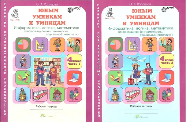 Юным умницам и умникам. Информатика, логика, математика (информационная грамотность, социальный интеллект). 4 класс. Рабочая тетрадь в двух частях (комплект из 2 книг)