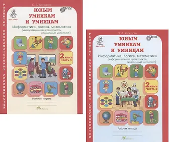 Юным умницам и умникам. Развитие познавательных способностей. Информатика, логика, математика (информационная грамотность, социальный интеллект). 2 класс. Рабочая тетрадь. В двух частях (комплект из 2 книг)