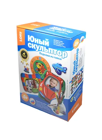 Комплектация: гипс, акриловые и акварельные краски, кисть, формы для отливки (2 фоторамки, 1 тарелка, 8 магнитов), подставка для тарелки, магнитная лента, инструкция.