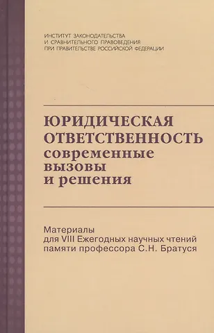Сборник материалов для VIII Ежегодных научных чтений, посвященных памяти профессора С.Н. Братуся, включает в себя статьи о юридической ответственности в современных условиях. Структура сборника отражает отраслевой подход к проблеме изучения природы юридической ответственности, а также разграничение мер юридической ответственности в публично-правовых и частноправовых отношениях.