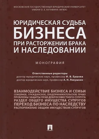 Коллективная монография посвящена актуальным проблемам определения юридической судьбы бизнеса при расторжении брака и наследовании. Материал изложен с учетом последних изменений гражданского, предпринимательского,