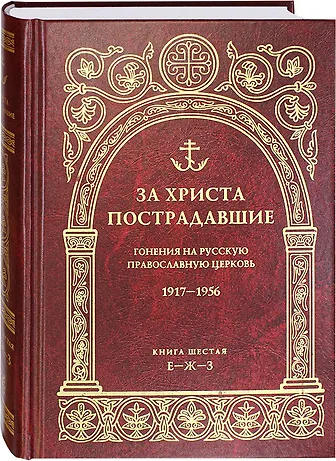 Биографический справочник «За Христа пострадавшие» содержит сведения о пострадавших за православную веру в годы репрессий клириках и мирянах Русской Православной Церкви. Справочник составлен по материалам одноименной базы данных, разработанной д.т.н. проф. Н.Е. Емельяновым в Православном Свято-Тихоновском гуманитарном университете на базе оригинального программного обеспечения СУБД НИКА (разработка Института системного анализа РАН). Сведения о пострадавших приводятся в алфавитном порядке. Шестой том составлен из биографических справок на буквы Е-Ж-З.