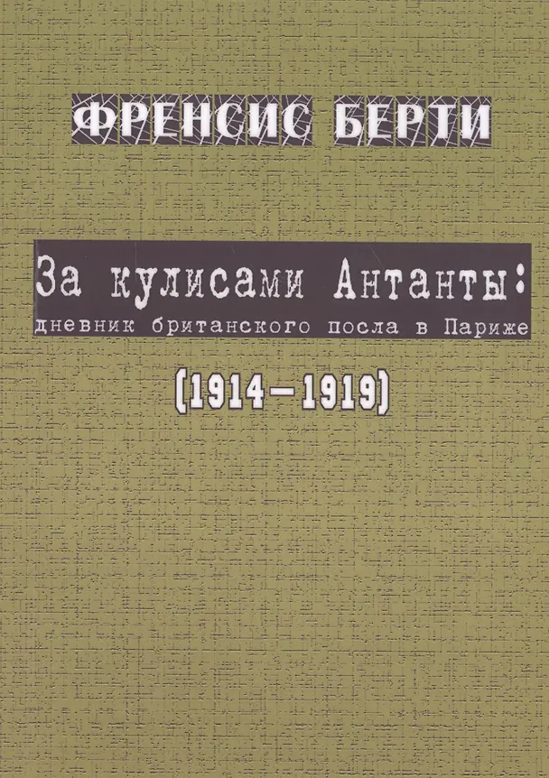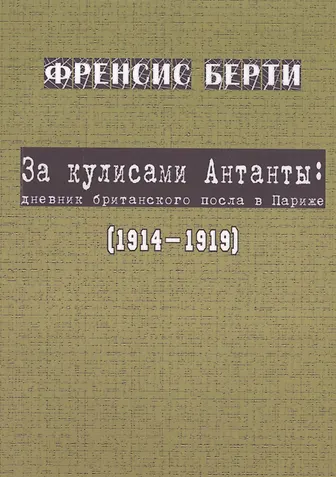 Дневник Френсиса Берти. на протяжении тринадцати лет занимавшего должность посла Великобритании во Франции. был опубликован в 1924 г.; русский перевод увидел свет в 1927 г. под названием ЗА КУЛИСАМИ АНТАНТЫ. ДНЕВНИК БРИТАНСКОГО ПОСЛА В ПАРИЖЕ, 1914-1919".