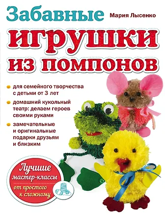 Что это за книга? Книга об очень интересном виде рукоделия - созданию игрушек из помпонов. Что внутри? Информация обо всех нужных материалах и инструментах ,которые наверняка найдутся в каждом доме. В книге содержатся яркие пошаговые иллюстрации для успешного выполнения всех этапов работы. Для кого эта книга? Для начинающих рукодельниц,а также мам-рукодельниц, которые хотели бы превратить свое любимое хобби в увлекательную игру с ребенком.