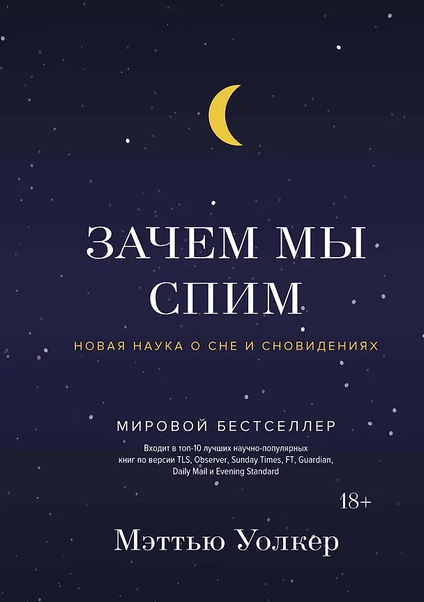 Мэттью Уолкер, нейробиолог и профессор Калифорнийского университета, в своей научно-популярной книге разбирается в самых важных вопросах о сне. Его цель – не просто рассказать о функциях отдыха, а изменить отношение к нему, сделать здоровый сон приоритетом в жизни каждого человека. В издании приводится полное исследование того, как недосып влияет на мозг, тело и даже на успех в работе, учёбе и личной жизни.