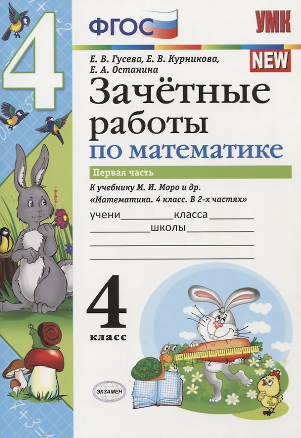 Зачетные работы по математике 4 кл. Ч.1 (к уч. Моро) (3 изд) (мУМК) (к нов. ФПУ) Гусева (ФГОС)