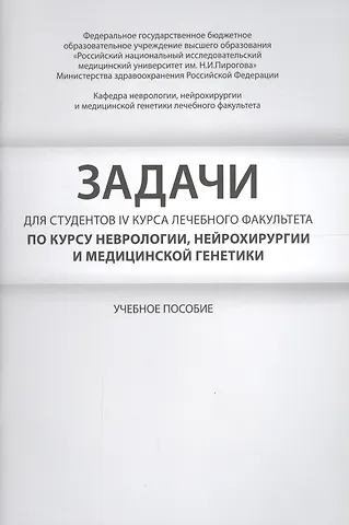 В учебном пособии представлены 90 ситуационных задач с ответами по основным разделам частной неврологии, нейрохирургии и медицинской генетики. Пособие предназначено для формирования у обучающихся профессиональных компетенций по таким разделам неврологии, как диагностика, основные факторы риска, патогенез, клиническая картина, дифференциальный диагноз, тактика лечения, профилактика и прогноз неврологических заболеваний. Ситуационные задачи моделируют будущую профессиональную деятельность и могут быть использованы для контроля усвоения материала, самостоятельной работы в процессе подготовки к занятиям, а также для дистанционного обучения студентов.