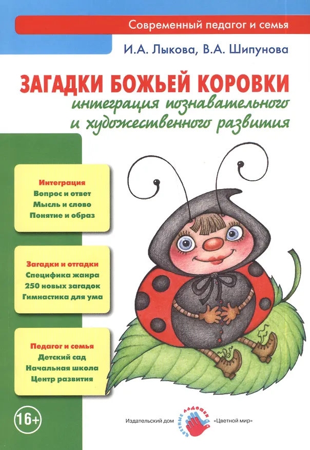 Книга расширяет представление о развивающем и воспитательном потенциале загадок, дает характеристику основных видов, показывает значение загадок в процессе интеграции познавательной и художественной деятельности детей дошкольного и младшего школьного возраста. Включает более 250 новых загадок, представленных по классическим темам: игрушки, огород, цветы, насекомые, домашние и лесные животные, зоопарк, море, инструменты, профессии. Предлагает варианты творческих занятий с детьми на основе загадок (лепка, аппликация, рисование). Адресована воспитателям детских садов, учителям начальной школы, родителям, бабушкам, дедушкам, гувернерам и всем, кто любит отгадывать загадки.