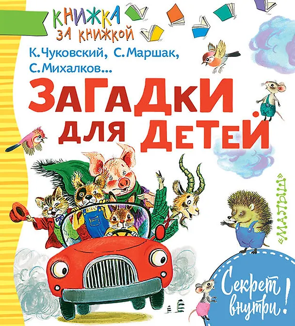 В книгу «Загадки для детей» вошли русские народные загадки, а также загадки поэтов-классиков К.И. Чуковского, С.Я. Маршака и С.В. Михалкова о бытовых предметах, о явлениях природы и о человеке. Серия «Книжка за книжкой» открывает новые имена, в этой книге представлены загадки самых разных современных авторов, а также их рассказы и стихи с интересными вопросами.